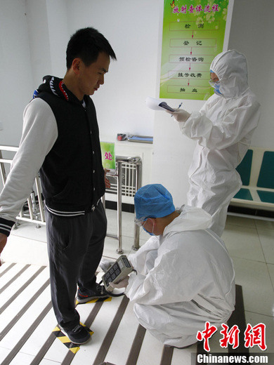 3月18日,多名從日本歸來的民眾來到解放軍307醫院檢查核輻射。近日,北京市解放軍307醫院核污染檢測中心正式啟用,為向從日本歸來人員,提供核污染檢測。中新社發 富田 攝