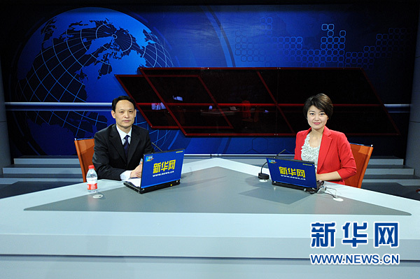2011年5月9日,“慶祝中國共產黨成立90周年——黨史專家解讀紅色春秋”系列訪談在新華網進行,中央黨校黨史教研部副主任、博士生導師曹普做客新華網演播室。圖為嘉賓與主持人合影。新華網 陳競超 攝