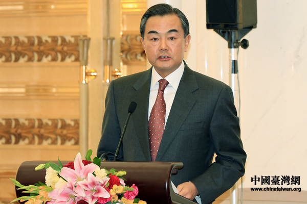 中共中央臺灣工作辦公室、國務院臺灣事務辦公室與海峽兩岸關系協會26日下午在人民大會堂舉行“九二共識”20周年座談會。圖為中共中央臺辦、國務院臺辦主任王毅在座談會上講話。(中國臺灣網 陳佳慧 攝)