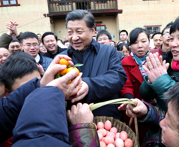 2月2日,習近平到井岡山看望老區鄉親,向大家拜年,一一熱情握手。新華社記者 蘭紅光 攝
