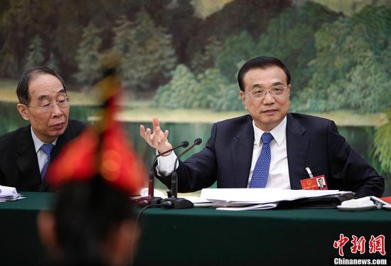 3月7日,中共中央政治局常委、國務院總理李克強參加十二屆全國人大四次會議福建代表團的審議。中新社記者 劉震 攝