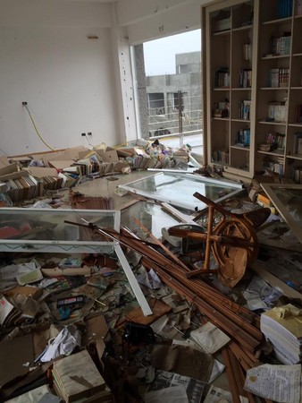 據(jù)臺(tái)灣東森新聞報(bào)道,強(qiáng)臺(tái)風(fēng)“尼伯特”清晨從臺(tái)東太麻里登陸臺(tái)灣,對(duì)臺(tái)東地區(qū)造成嚴(yán)重?fù)p害。臺(tái)東大學(xué)教授魏俊華上午分享家里的受損情形:家中的落地窗連框帶玻璃整片被掀開,3樓的書柜直接被吹飛到1樓,他的教科書和學(xué)生的畢業(yè)論文現(xiàn)在都在稻田里“泡湯”:“到底是臺(tái)風(fēng)還是地震?真是欲哭無(wú)淚。”