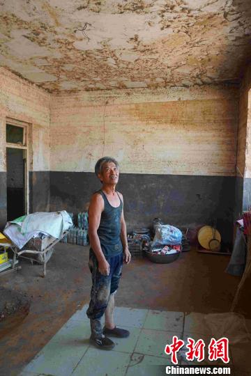 在臺頭村商業街經營商店的許拉柱表示,此次洪水已沒過一樓的屋頂。 張帆 攝