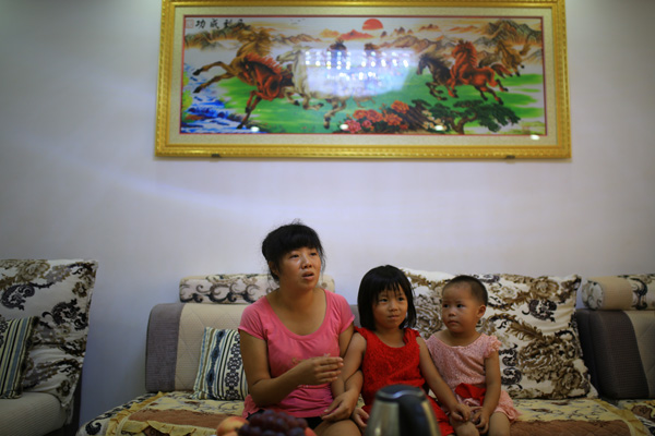 王檢秀和兩女兒在新家。陳若冰 攝于都縣在縣城工業園、中心鎮、中心村,通過“政府主導、市場運作、梯度安置”的辦法,建成了上歐工業新區移民搬遷安置示范區(即思源社區)、嶺背鎮中心鎮區移民搬遷扶貧新型社區和羅坳大橋移民新村等一批山區群眾“進城進園 ”整體移民搬遷扶貧新型社區。