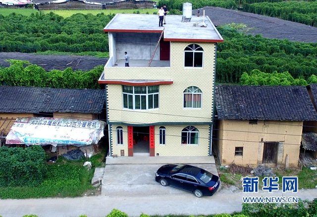 圖為劉成發的新家。這是一棟占地面積90多平方米的兩層半小洋房,與旁邊兩棟破舊的老房子形成鮮明的對比。