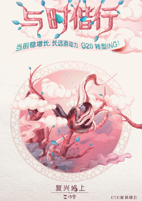 第一幅,“與時偕行”。作為2016年G20杭州峰會主席國,中國將積極推動G20“破繭新生”,從短期的危機(jī)應(yīng)對平臺向長期治理平臺轉(zhuǎn)型,實(shí)現(xiàn)轉(zhuǎn)型和發(fā)展。