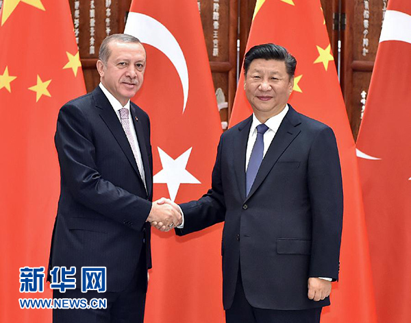 9月3日,國家主席習(xí)近平在杭州會見來華出席二十國集團領(lǐng)導(dǎo)人杭州峰會的土耳其總統(tǒng)埃爾多安。新華社記者 李濤 攝