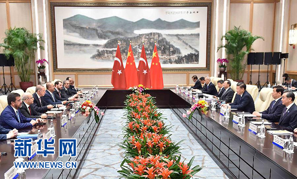 9月3日,國家主席習(xí)近平在杭州會見來華出席二十國集團領(lǐng)導(dǎo)人杭州峰會的土耳其總統(tǒng)埃爾多安。 新華社記者 李濤 攝