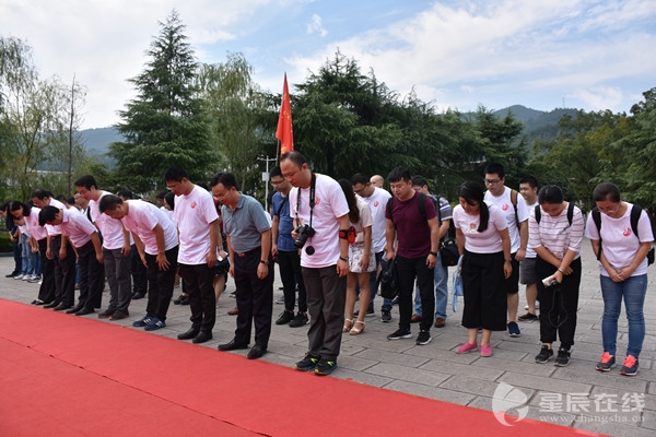 (“長征路上奔小康”網(wǎng)絡媒體“走轉改”大型主題采訪團成員向賀龍銅像鞠躬致敬。)