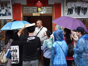 在楓香鎮的花茂村,記者懷著崇敬之心走進習近平總書記曾到訪過的小賣部、農業大棚、紅色之家。連綿陰雨天里,記者們始終不離村干部身邊,左手錄音筆,右手資料夾,迫切詢問村鎮如今的經濟狀況,關切鄉民生活的困難不足。攝像大哥緊跟隊伍一側,用雨披將攝像器材包裹嚴實,全然不在意早已被雨水浸濕的薄衫。