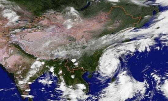 臺風“鲇魚”登陸前后的衛星云圖。