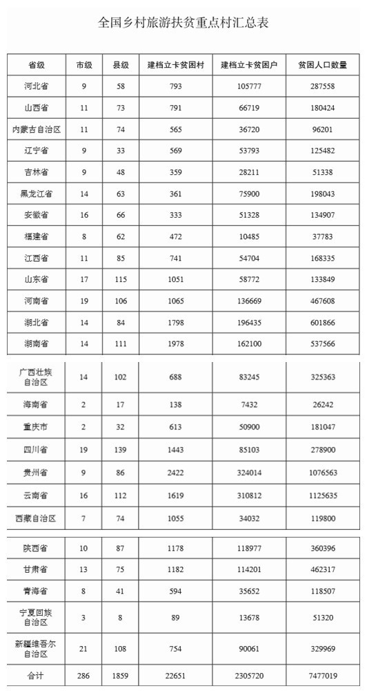 4、萬企萬村幫扶專項行動。組織動員全國1萬家旅游企業(yè)、賓館飯店、景區(qū)景點、旅游規(guī)劃設(shè)計單位、旅游院校等單位,對鄉(xiāng)村旅游扶貧重點村進行幫扶脫貧。采取安置就業(yè)、項目開發(fā)、輸送客源、定點采購、指導(dǎo)培訓(xùn)等多種方式幫助鄉(xiāng)村旅游扶貧重點村發(fā)展旅游,通過5年時間解決100萬左右貧困人口的脫貧。