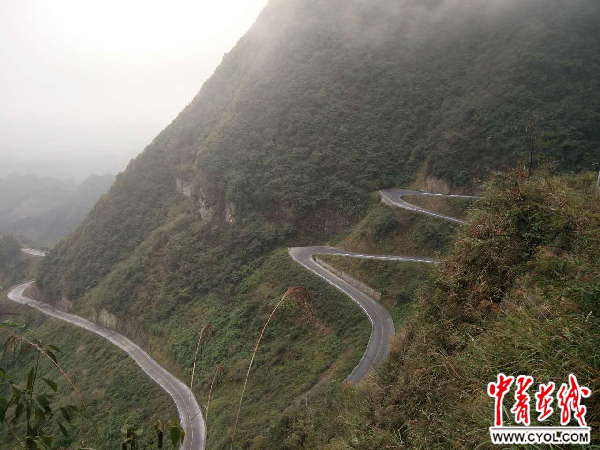 采訪團成員在路邊拍攝“秀山45拐”