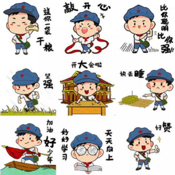 “快去睡!”“敲開心!”“開心到飛起”……這些鮮活調皮的話語不是來自微信表情包中會賣萌的貓咪,也不是來自頭上長草的玩偶,更不是會耍帥的8青蛙,而是小學課本里的倔強小紅軍想對你說的話。