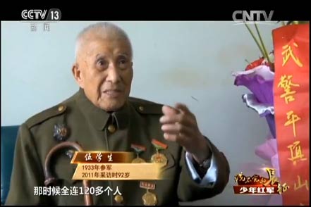 王述文的參軍之路就沒有那么順利了。他八歲參加兒童團,拿著紅纓槍站崗放哨,跟著自衛隊打土豪、分田地,1933年,紅軍到了王述文的家鄉,四川巴中,這一年他九歲。他決定參加紅軍,可沒成想,人家嫌他小,不要。當時王述文覺得只有參加紅軍才有出路,所以就哭、鬧。面對這個又哭又鬧的孩子,紅軍沒有辦法,只能暫時讓他跟著部隊。有一天走了120里路,到晚上點名,點到最后連長也沒點王述文的名字,王述文就“哼”地一聲,連長這次叫了他的名字。