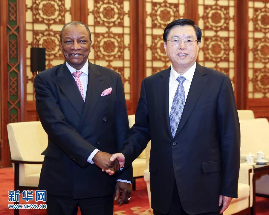 11月2日,全國人大常委會委員長張德江在北京人民大會堂會見幾內(nèi)亞總統(tǒng)孔戴。 新華社記者丁林?jǐn)z