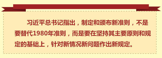堅(jiān)持集體領(lǐng)導(dǎo)、反對(duì)個(gè)人專斷,維護(hù)黨的集中統(tǒng)一、嚴(yán)格遵守黨的紀(jì)律,要講真話、言行一致,接受黨和群眾的監(jiān)督、不準(zhǔn)搞特權(quán)……1980年準(zhǔn)則的主要原則和規(guī)定得到進(jìn)一步重申。新老準(zhǔn)則相互聯(lián)系、一脈相承,都是當(dāng)前和今后一個(gè)時(shí)期黨內(nèi)政治生活所必須遵循的。