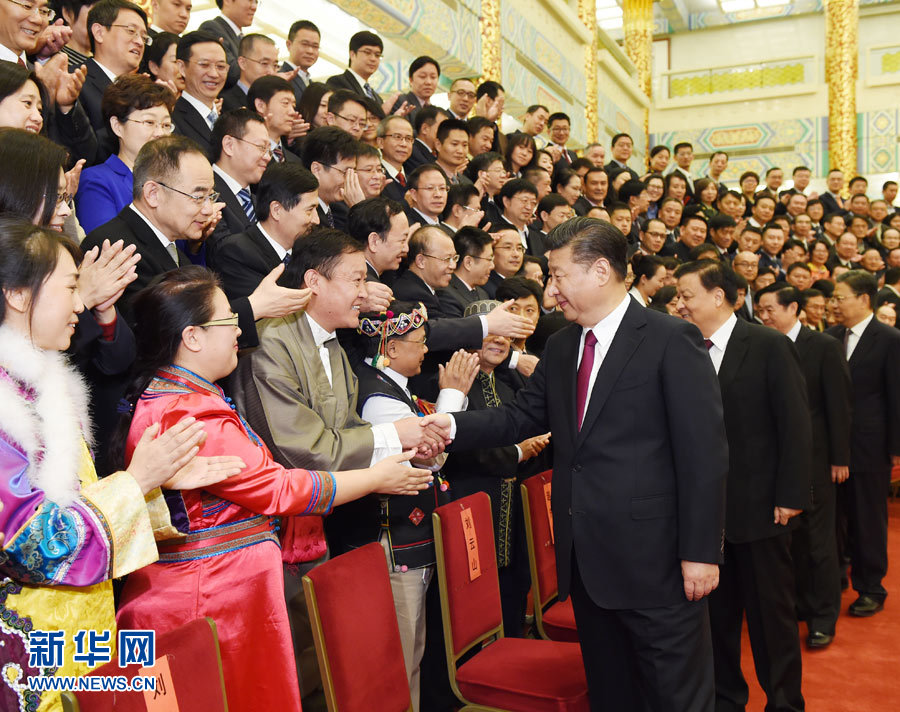 11月7日,黨和國(guó)家領(lǐng)導(dǎo)人習(xí)近平、劉云山等在北京人民大會(huì)堂會(huì)見中華全國(guó)新聞工作者協(xié)會(huì)第九屆理事會(huì)全體代表和中國(guó)新聞獎(jiǎng)、長(zhǎng)江韜奮獎(jiǎng)獲獎(jiǎng)?wù)叽怼P氯A社記者李學(xué)仁攝