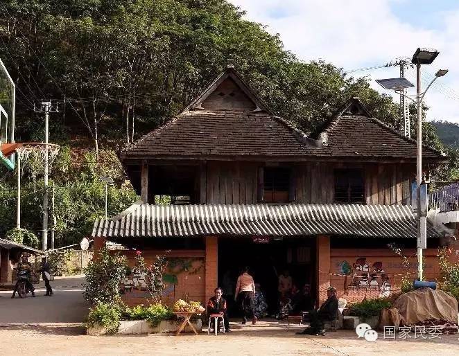 基諾族的現代民居,村里已經使用上了太陽能路燈。