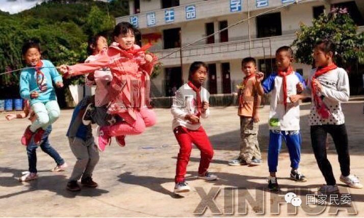 基諾族鄉民族小學的孩子們在校園里跳繩。該校的588名學生中,大多數是基諾族。