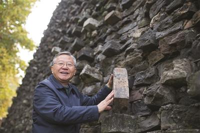 專家手舉明城磚很欣慰。新華報業視覺中心記者 宋嶠 攝