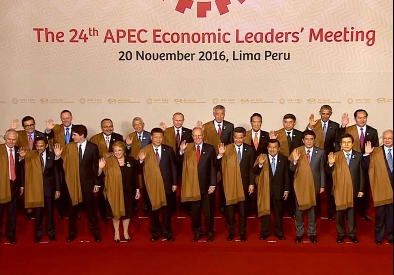 APEC峰會領導人身披秘魯特色披肩 集體拍攝“全家福”