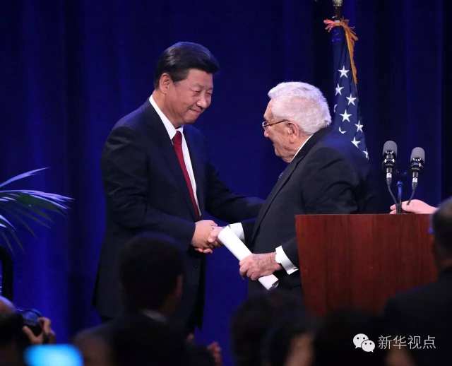 2015年9月,習(xí)近平應(yīng)邀訪問(wèn)美國(guó)。在華盛頓州當(dāng)?shù)卣兔绹?guó)友好團(tuán)體舉行的聯(lián)合歡迎宴會(huì)上,習(xí)近平在演講開(kāi)始時(shí)專門(mén)對(duì)基辛格此前的發(fā)言表示感謝:“基辛格博士總能說(shuō)出一些新穎的觀點(diǎn),他的介紹讓我對(duì)自己也有了一個(gè)新的認(rèn)識(shí)角度。”