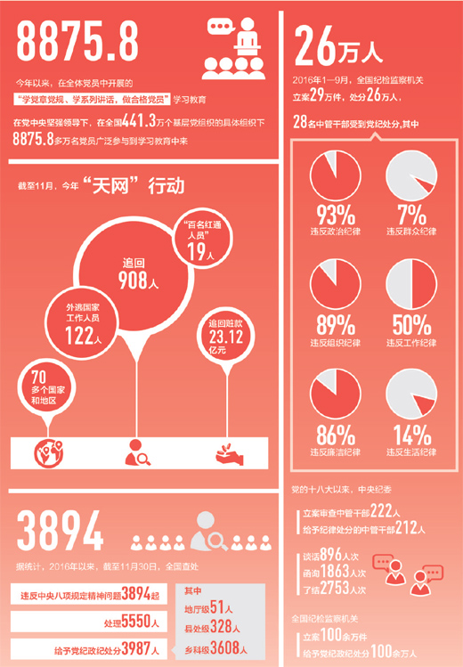 “29萬件”“26萬人”,這僅僅是今年前三季度的反腐敗“成績單”,數(shù)據(jù)表明,全面從嚴治黨正走向深入,管黨治黨更加嚴緊實,監(jiān)督執(zhí)紀問責力度越來越強。