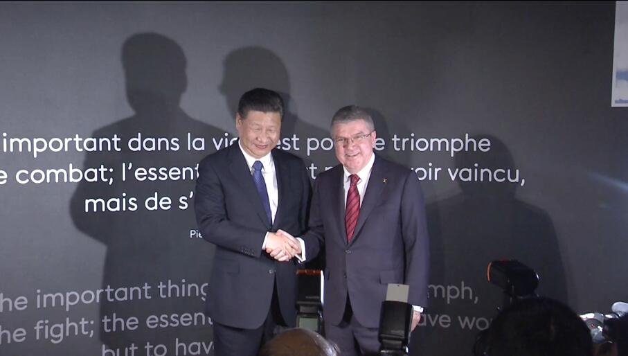 18日,國家主席習近平在洛桑國際奧林匹克博物館會見國際奧林匹克委員會主席巴赫。會見后,習近平和彭麗媛在巴赫主席夫婦陪同下,參觀國際奧林匹克博物館。