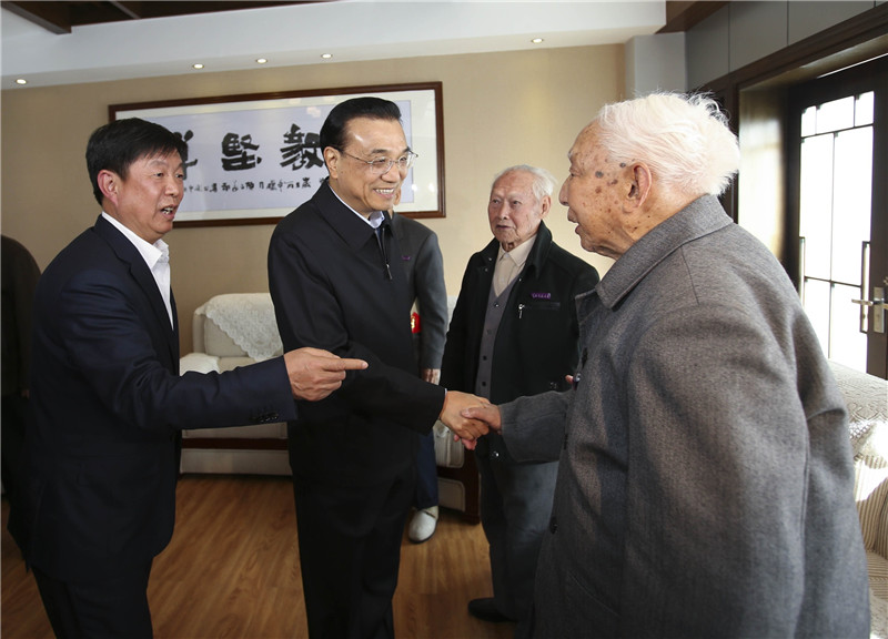 【春節前夕李克強昆明看望西南聯大“老學長”】李克強24日在昆明看望西南聯大老校友。他們均已年逾九旬,最年長者97歲。總理握著他們手動情稱呼“老學長”。李克強說,在國家危亡之際,聯大師生展現了我們民族最寶貴的品格,傳承了民族精神和血脈。教育是國家的根基,感謝你們今天依然守護著聯大精神。