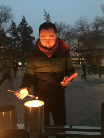 昨天凌晨三點(diǎn)多,北京晨報(bào)記者來(lái)到雍和宮的大門外,此時(shí)門口已有幾十人在排隊(duì)等待。來(lái)自湖北潛江的王凡排在隊(duì)伍的最前端,他已經(jīng)連續(xù)3年搶到大年初一的頭炷香。為此他2014年排了48小時(shí),2015年排了77小時(shí),2016年排了35小時(shí)。看到記者,王凡開心地打起了招呼。他稱,自己三天前就從湖北趕到北京,就是為了搶頭香。“今年的頭香也是囊中之物。”他說(shuō),為了能夠順利搶到頭香,今年還帶了侄子和三個(gè)徒弟幫忙。“整個(gè)環(huán)節(jié)我都太熟悉了”,他十分有信心。