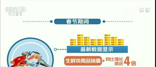 電商平臺的數據顯示,春節期間生鮮類商品熱銷,同比增長接近4倍,進口生鮮銷量更是同比增長超過14倍。