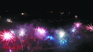 村里放起了璀璨的焰火。