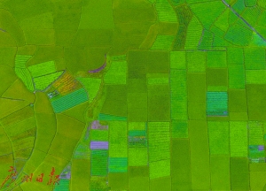 航拍俯瞰綠意盎然的農田。