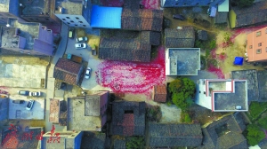 農家院里,鞭炮碎屑鋪成“紅毯”。