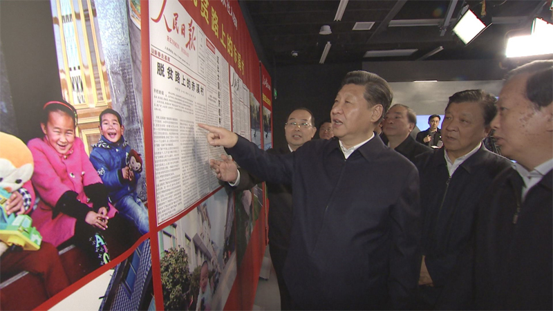 2016年2月19日上午,習近平先后來到人民日報社、新華社、中央電視臺三家中央媒體調研。在人民日報社,習近平觀看報刊展板。