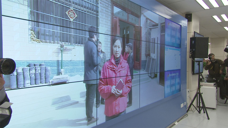在新華社新聞信息發稿中心,習近平通過視頻和正在河南蘭考縣采訪的新華社記者連線。