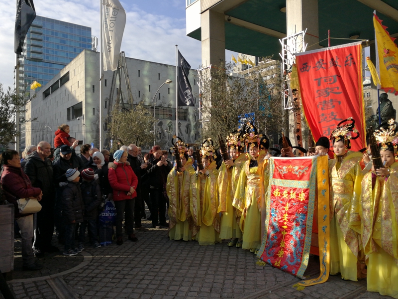 2017年春節,何家營樂社在荷蘭鹿特丹市街心廣場進行鼓樂表演