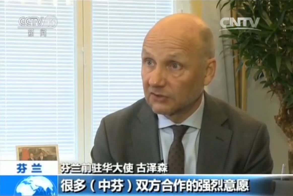 芬蘭前駐華大使 古澤森:很多(中芬)雙方合作的強烈意愿,都將在未來良好而多元的合作中被我們見證,習主席的訪問是一次很有遠見的訪問,雖然我們在此歡慶芬蘭獨立100周年,但是和過去相比,未來更重要,兩國領導人所做的也表現了這一點。