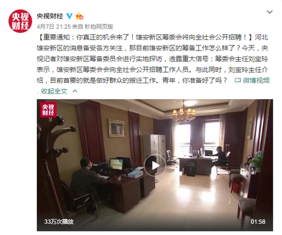 [重要通知:你真正的機會來了!雄安新區籌委會將向全社會公開招聘!]河北雄安新區的消息備受各方關注,那目前雄安新區的籌備工作怎么樣了?今天,央視記者對雄安新區籌備委員會進行實地探訪,透露重大信號:籌委會主任劉寶玲表示,雄安新區籌委會會向全社會公開招聘工作人員。與此同時,劉寶玲主任介紹,目前首要的就是做好群眾的搬遷工作。青年,你準備好了嗎?