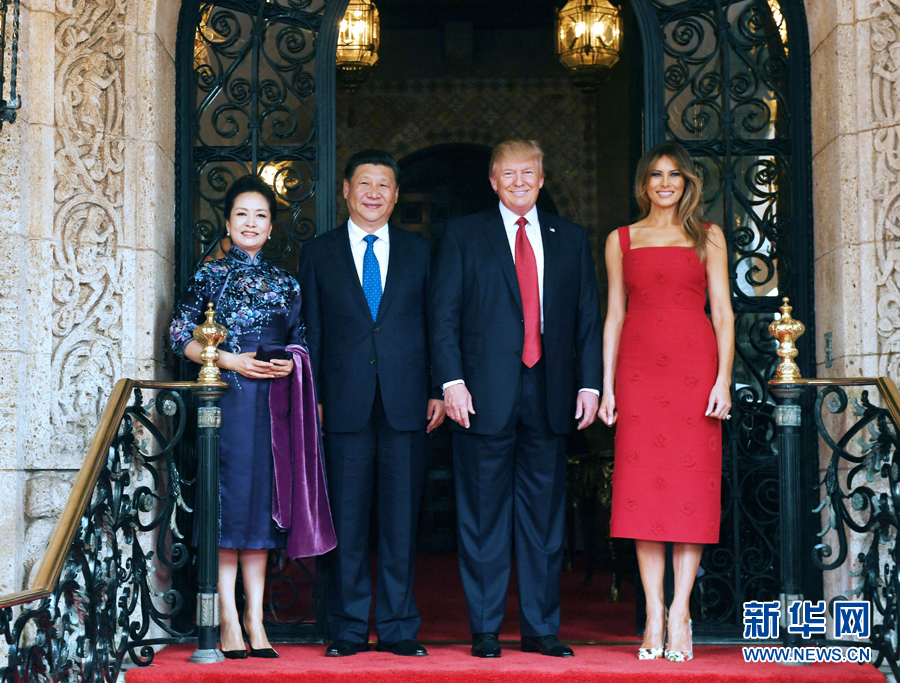 當地時間4月6日,國家主席習近平在美國佛羅里達州海湖莊園同美國總統特朗普舉行中美元首會晤。這是習近平和夫人彭麗媛同特朗普和夫人梅拉尼婭合影留念。新華社記者 饒愛民 攝