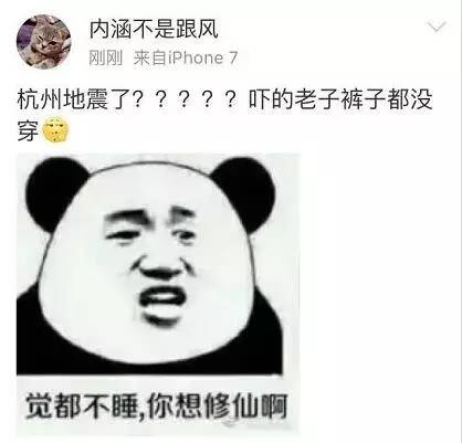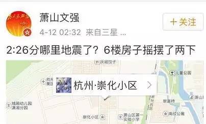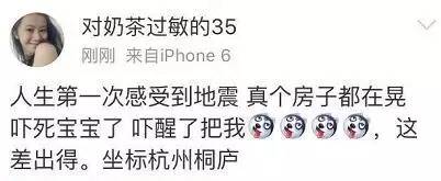 胡胡胡曉琴:坐標蘭溪,有震感!嚇懵寶寶了,搖醒老公只換來淡淡的一句睡覺,然后繼續睡了睡了睡了了了!!!笑話,老娘的心現在還在顫抖好嗎
