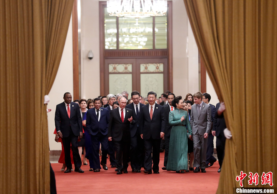 5月14日晚,中國(guó)國(guó)家主席習(xí)近平在北京人民大會(huì)堂舉行“一帶一路”國(guó)際合作高峰論壇歡迎宴會(huì)并致辭。中新社記者 杜洋 攝
