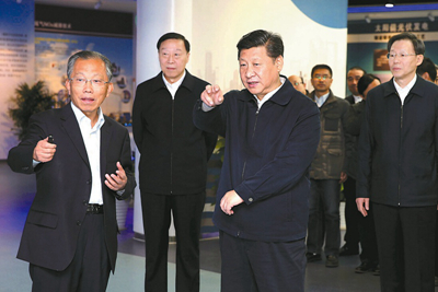 習(xí)近平在江蘇省產(chǎn)業(yè)技術(shù)研究院觀看成果演示,了解江蘇省推動科技體制改革和科技創(chuàng)新體系建設(shè)有關(guān)情況。 新華日報記者 于先云攝
