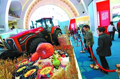 “砥礪奮進(jìn)的五年”大型成就展上,“東方紅-LW4004”400馬力重型拖拉機(jī)吸引了不少參觀者駐足觀看。本報(bào)記者 方非攝
