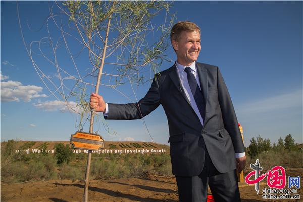 聯合國副秘書長、聯合國環境規劃署執行主任埃里克·索爾海姆考察中國庫布其沙漠。