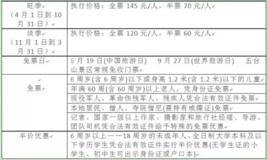 淡季:每年11月15日—次年1月15日,普通票:140元;優惠票:70元。
