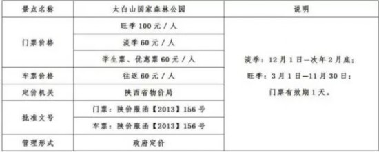 旺季時間:4月1日到10月31日;旺季景區門票:125元/人次,觀光車票:90元/人次(含往返)。