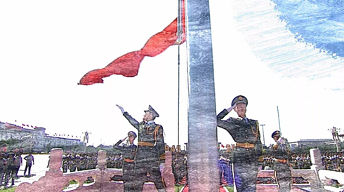 天將破曉的時候,營地響起了嘹亮的歌聲。他們唱著“英雄的國旗兵,忠誠的國旗兵,把祖國的尊嚴扛在肩上,五星紅旗高高飄揚”。