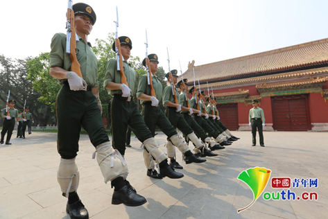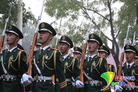 天安門國旗護衛隊隊員正在唱軍歌。中國青年網見習記者 馬珊 攝